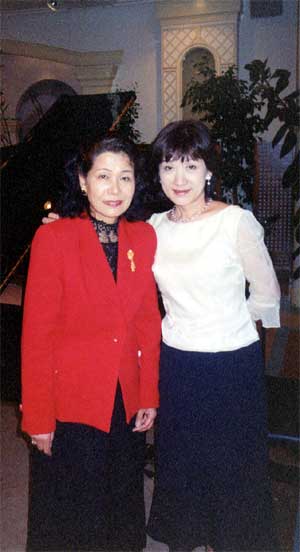 | 4月6日、神奈川県日歯大校友会のパーティーにて、女優、白川和子さんとピアノの前で。 とても素敵な講演でした。 |